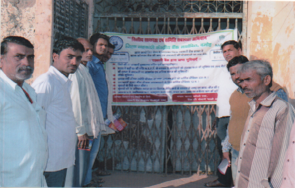 आज दिनांक 02/12/2015को जिला सहकारी केन्द्रीय बैंक मर्यादित दमोह शाखा पटेरा की समिति पड़री सहजपुर में वित्तीय साक्षरता एवं समिति सदस्यता अभियान षिविर का आयोजन हुआ जिसमें समिति प्रबंधक महोदय, सहायक समिति प्रबंधक, एवं समस्त समिति स्टाफ एवं सहकारिता विभाग से सी.ई.ओ.महोदय श्री आर.के जैन , व ग्या कोरी, श्यामलाल, लक्ष्मीरानी,मथुरा प्रसाद, जनकू वसोर, सहित 32 ग्रामीण कृषकां की उपस्थिती रही । समिति के समस्त स्टाफ का पूर्ण सहयोग प्राप्त हुआ । षिविर में आये सभी ग्रामीणों को वित्तीय साक्षरता का महत्व मैंने बताया एवं बैंक व नाबार्ड से संबंधित सभी लाभकारी व महत्वपूर्णं योजनाओं की जानकारी दी एवं इस हेतू प्रचार-प्रसार सामग्री , पंपलेटस, इत्यादि सभी उपस्थित लागों को बांटे गए । सभी उपस्थित किसानों एवं ग्रामीण लोगों को बैंक के समस्त उत्पादों जैंसे बचत खाता, आवर्ती खाता, मनी मल्टी पिल खाता, चालूखाता, इत्यादी के बारे में मैंने जानकारी दी एवं प्रत्येक व्यक्ति का बचत खाता बैंक में होना चाहिए इसका महत्व भी मैंने सभी उपस्थित लोगों को बताया । साथ ही किसान क्रेडिट कार्ड कैंसे बनवाया जाता है यह जानकारी भी मैंने कृषकों को उपलब्ध कराई। इस प्रकार मैंने अपनी समन्वयक की भूमिका का सफल रूप से निर्वहन करते हुए बैंक शाखा पटेरा मे 08 लोगों के बचत खाते प्रारंभ करवाने में सहयोग किया एवं 08 लोगों को समिति पड़री सहजपुर का समिति सदस्य बनवाने में पूर्ण सहयोग किया । नाबार्ड के वित्तीय साक्षरता अभियान के कार्यक्रम के परिणाम सकारात्मक हो इस हेतू भी मैंने पूर्ण प्रयास किया। एवं उपस्थित सभी लोगों को नियमित बचत करने का महत्व भी मैंने बताया।